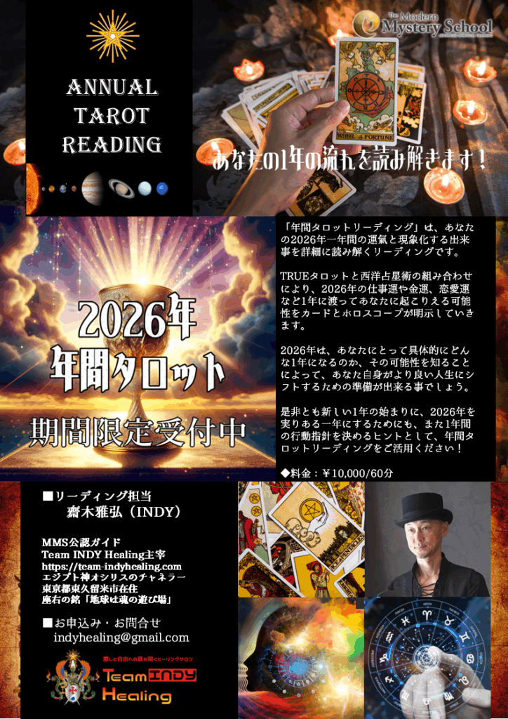 是非とも新しい一年の始まりに向けて、2026年を実りある一年にするために、また一年間の行動指針を決めるヒントとして、年間タロットリーディングをご活用ください。